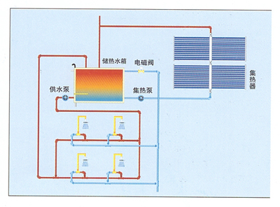 本系統(tǒng)中集熱器集中放置,設(shè)置滿足用戶需求容量的大型儲熱水箱,控制系統(tǒng)、循環(huán)裝置及其他輔助設(shè)...